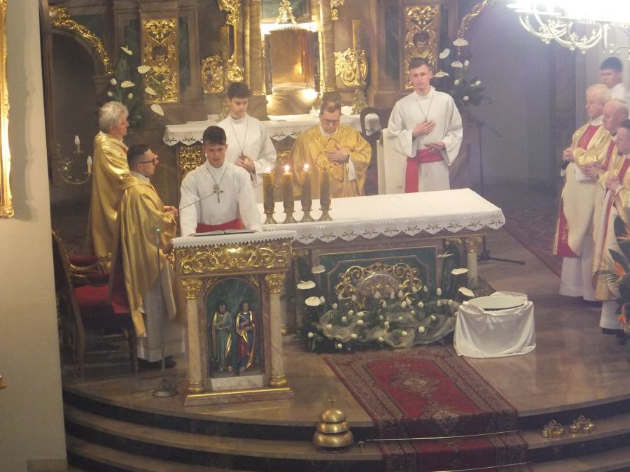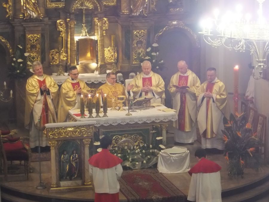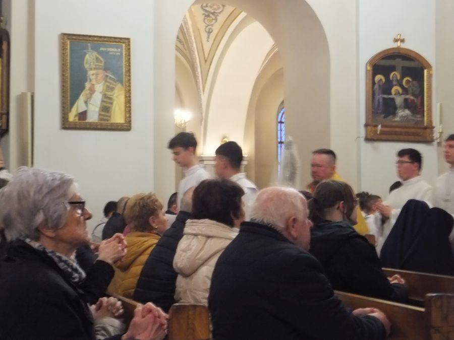 Triduum Paschalne Tegoroczne ceremonie Wielkiego Tygodnia w naszej Parafii sprawowali nasi duszpasterze ks. proboszcz Piotr Guzy, ks. wikary Michał Lepich, ks. Paweł Buchta, ks. Jan Buchta, ks. Bernard Drozd, ks. Józef Szklorz i ks. Łukasz Kwit. Wielki Czwartek - Msza Święta Wieczerzy Pańskiej